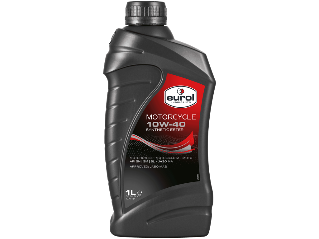 Beskrivelse EUROL, SEMI-SYNTHETIC MOTOR OIL 10W40 SG JASO-MA, 1 liter can. Semi-synthetic motor oil. Used in motorcycles where engine, clutch and transmission are combined and use the same oil. For racing, touring and off road models. Protects clutch plates against slipping and sticking. Meets or exceeds JASO-MA specifications for wet clutches. Fits: > |