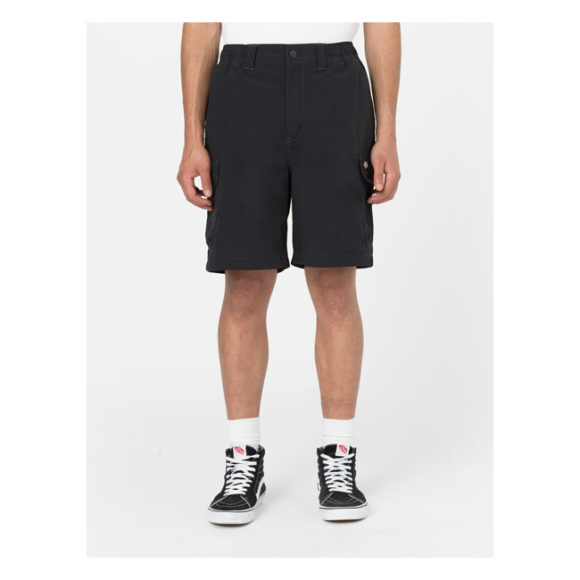 Beskrivelse DICKIES JACKSON CARGO SHORT BLACK "The Jackson cargo short is a classic utility piece with iconic Dickies style and detailing. A regular fitting short featuring two side cargo pockets with hidden snap closure and iconic woven Dickies label. Offered this season in lightweight nylon fabric in black and deep lake. A timeless utility short that’s made for everyday wear and that’sbuilt to last." |