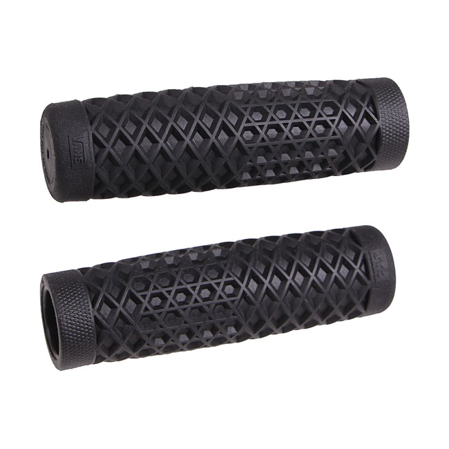 Beskrivelse ODI, Vans/Cult, waffle grips 1'' (25mm), Black Vans sneakers provide grip & style to skaters, snow boarders, surf-dudes, dudettes and just about anyone that is more into iconic statements than into average. The collaboration between Cultcrew and Vans gave birth to motorcycle grips, made with the classic waffle sole texture of Vans sneakers! A small dome in the center makes these grips fit like a glove and it's guaranteed that these non-slip grips will quality match Vans sneakers. Overall length 125mm. Note: A throttle sleeve is not included and must be re-used or purchased separately. Fits: > For 1" (25mm) handlebars |