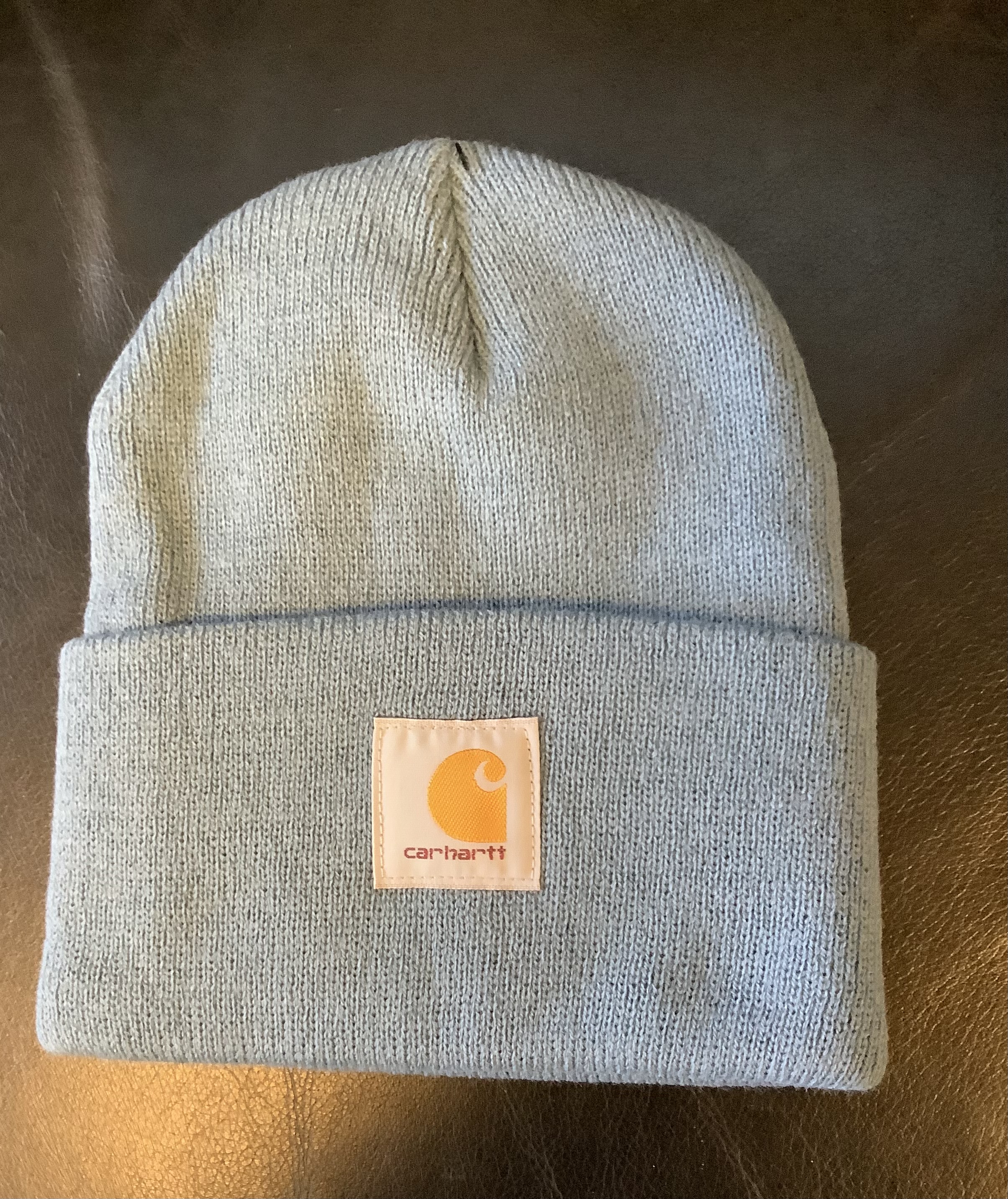 100% Acrylic · Rib knit · Fold-up cuff · Carhartt label on front