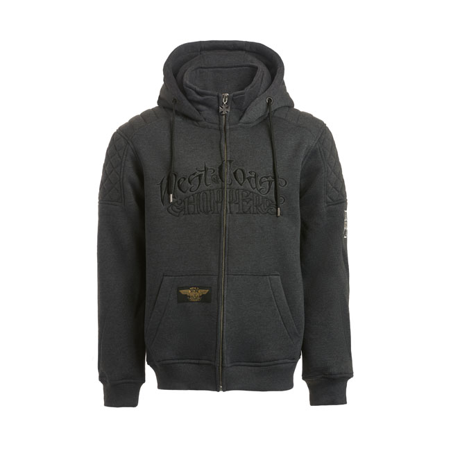 Beskrivelse WCC Choppers Por Vida zip hoodie grey This WCC Por Vida zip hoodie is a beefy hoodie in heavy weight blend of cotton and polyester. The gang script logo on the chest is fully embroidered as well as the Choppers por Vida hit at the back. The hood is double layered with the fabric of the hoody to give it an extra beefy look! The hoody also features a high collar keeping you warm! |