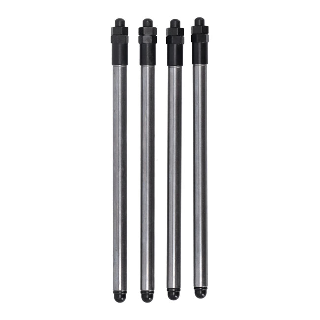 Beskrivelse Andrews, Twin Cam adj. EZ-install chromoly pushrod set EZ-install pushrods can be installed without removing the rocker covers of fuel tanks, a big plus when switching to a bolt-in cam. Available in chromoly steel and aluminum. Chromoly pushrods are thinner and have better flex resistancy than aluminum. Aluminum is lighter than chromoly and will reduce inertia mass. But for heavy duty service, like racing and/or high lift cams with high pressure springs it is still advised to run chromoly pushrods. Note: See 503689 for aluminum pushrods. Fits: > 99-17 Twin Cam A/B (NU) |