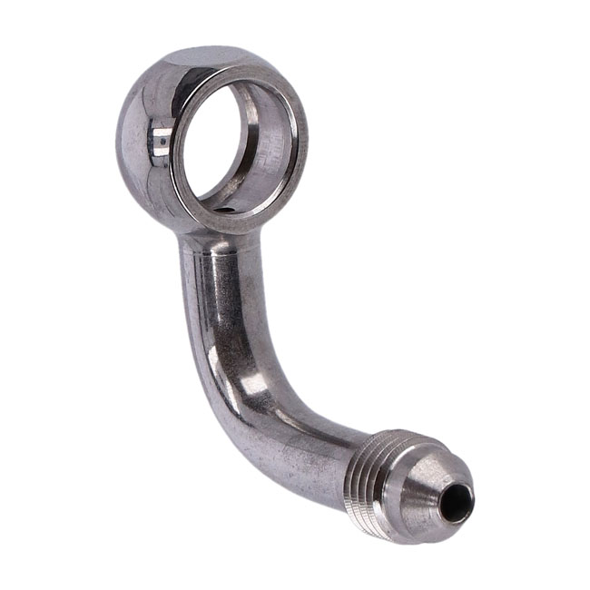 Beskrivelse Goodridge, Slimline banjo fitting 7/16", 90 degrees. SS High polished stainless steel. 90 degrees Banjo fitting, 11mm - 7/16". Fits straight to Goodridge brake line kits. |