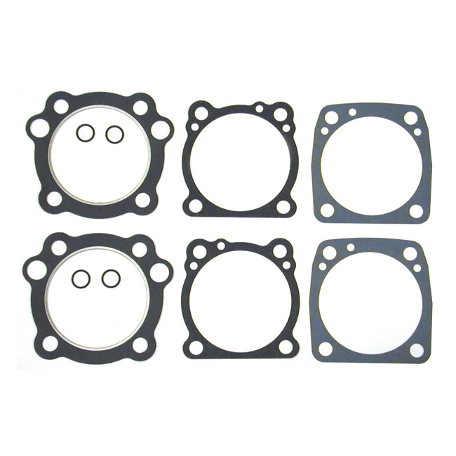 Beskrivelse James, Evo cylinder head & base gasket kit Standard 3-1/2" bore. Kit to service one engine. With .045" head (.046 starting thickness and .042" final crush) and .030" base gaskets (.031" starting thickness and .025" final crush). Complete with type 'A' (early) and type 'B' (late) style base gaskets. With O-rings as used for oil return on up to 2007 XL models. Type 'A' (early style) and type 'B' (late style) gaskets explained: There are 2 types of cylinder base gaskets for Evolution models available. For convenience sake we'll call them 'type A' (early) and 'type B' (late). *Type A' gasket was introduced on the 1984 Evolution Big Twin models, and can be used on all of the 84-99 1340cc Evo models and will follow the contours of the cylinder base perfectly. They will fit 86-22 Evo XL, but stick out at the cylinder base. This can be a problem with silicone beaded base gaskets. *Type B' gasket was introduced on Evolution XL Sportster models in 1986, and will fit all Evo XL models, but also all 84-99 Evo 1340cc models although the Big Twin cylinder base is a bit larger than the gasket. The 'type B' is the only gasket type that 'The Factory' supplied from 1986 onwards for both Evo Big Twin and Evo XL Sportster models. Both type 'A' and type 'B' have identical inner bore diameter, oil hole and stud hole locations. Gaskets for front & rear cylinder are identical. Only difference between the 'A' & 'B' gaskets is the outside perimeter. 16770-84-A Fits: > 84-99 Big Twin (Excl. Twin Cam); 88-22 XL Sportster1200 (Excl. 08-12 XR1200) (NU) |
