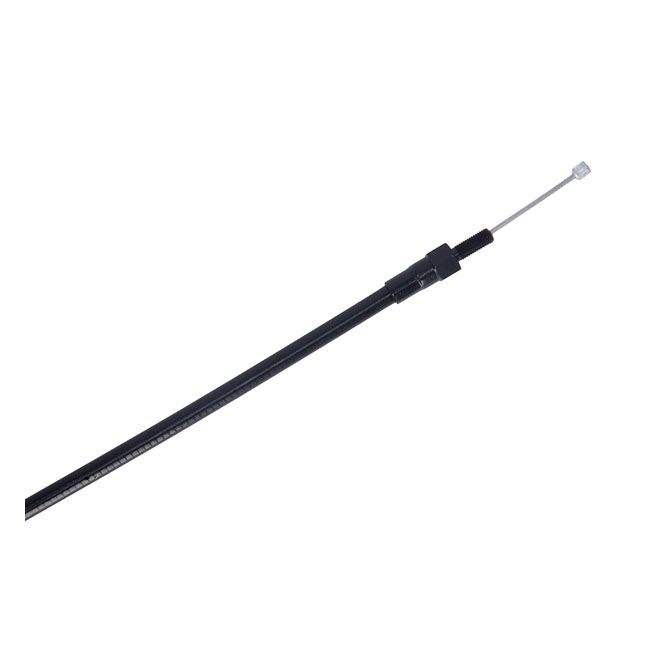 Beskrivelse MCS, clutch cable 68" (173cm). Black High efficiency clutch cable. This Motorcycle Storehouse control cable comes in a full black-out finish, with a black vinyl cable and black fittings. Oversize or undersize lengths (longer/shorter than standard) is not given since many different standard lengths exist. Instead they is available in a range of custom lengths to best suit your stock or custom application. Note: Dimensions as given are the outer cable length, which includes the adjuster placed at 31-1/2" (80cm) from the bottom of the cable. Note: Just measure the required length. Make sure to turn the handlebar to a full left & right stop, before you determine the correct length for your application. Note: Will not fit 08-up Touring models, these have a longer inner cable. Note: Fits M8 Softail models but comes with 06-17 early style non-automatic screw-type adjuster. Note: Lengths mentioned are approximate and for reference only. Fits: > 06-25 Big Twin clutch (excl. 08-25 Touring & all with hydraulic master cylinder) |