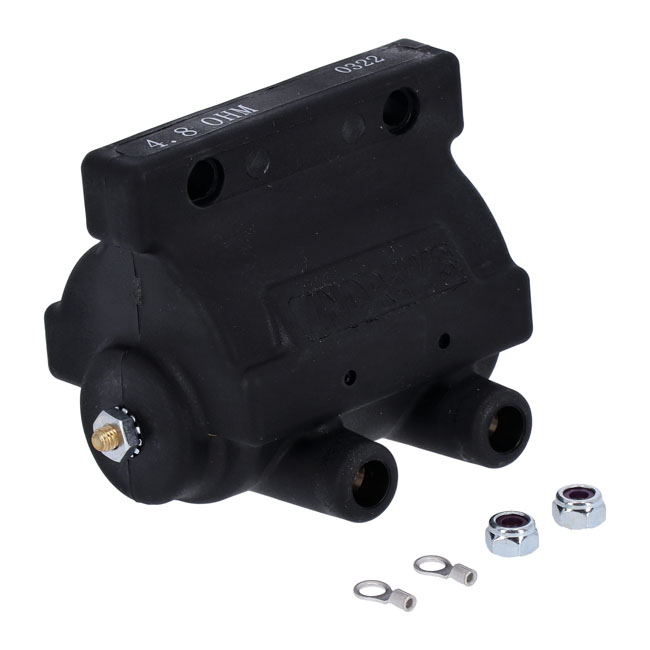 Beskrivelse Andrews, high performance coil black, 12V / 4.8 Ohm Dual fire 30.000 plus Volts High-Performance Andrews coil for 12 Volt systems. OEM style replacement for 31609-65A. - points ignition Fits: > 65-E78 Big Twin with points ignition; L78-79 Big Twin with OEM V-Fire I/II half electronic ignition; 65-79 XL Sportster (Excl. magneto models) |