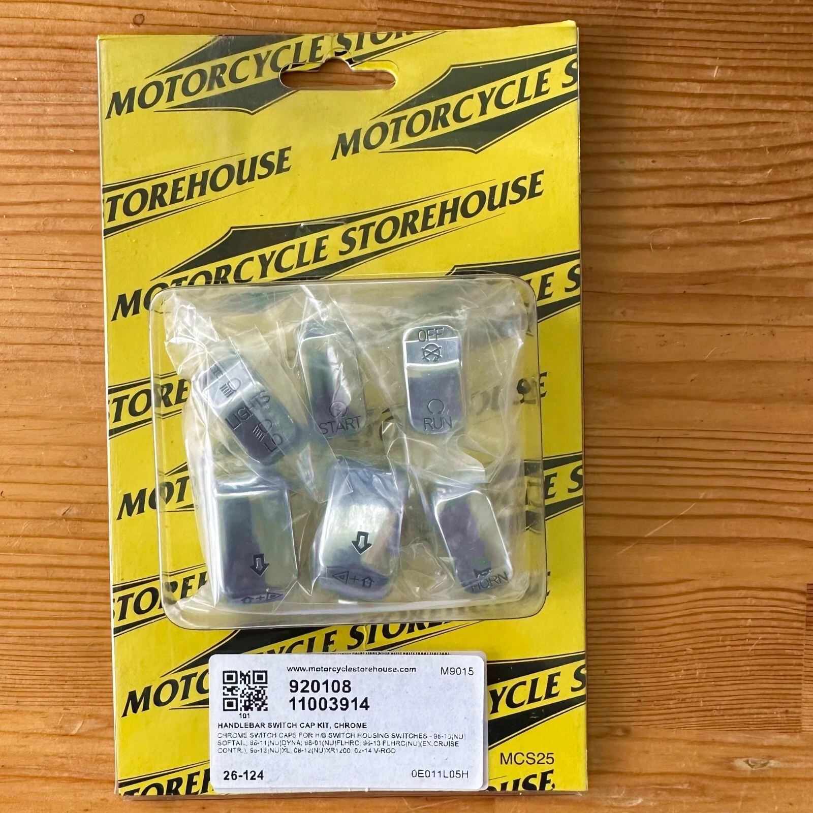 Beskrivelse Handlebar switch cap kit, chrome Description Chrome switch caps for h/b switch housing switches Fitment 96-10 Softail; 96-11 Dyna; 96-13 FLHR; 98-01 FLHRC; 96-13 XL Sportster; 08-12 XR1200; 02-17 V-Rod (NU). (Excl. cruise control models) |