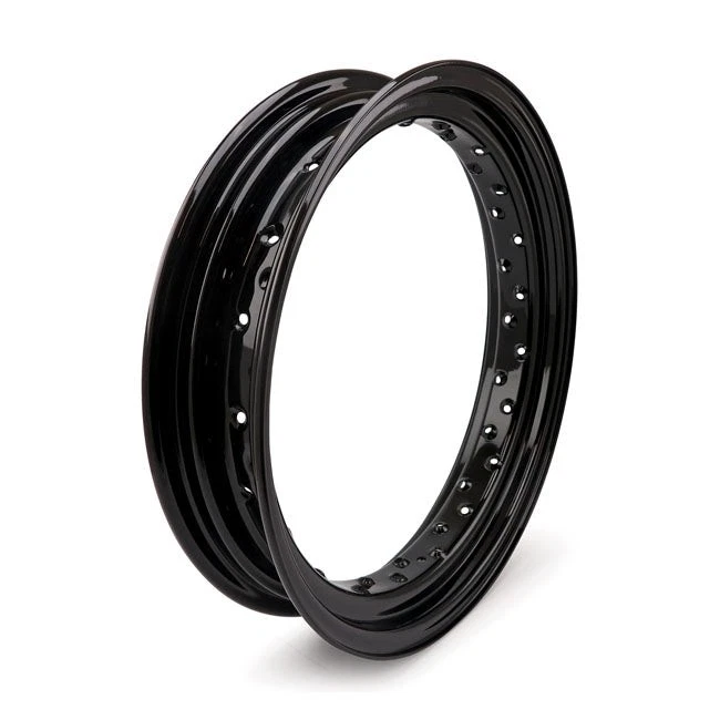 Black steel, 40 Spoke, drop center style. Metal Center valve, approx. 8.5mm hole.