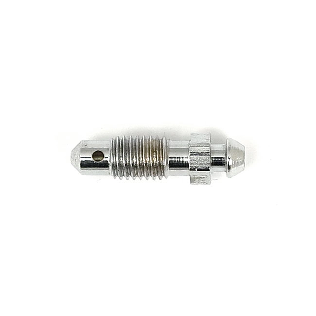 Beskrivelse Brake bleeder screws, 1/4" Description Zinc, 1/4"-28 thread (small) Fitment Rear: 58-62 Big Twin wheel CYL; 72-79 FL, 71-77 FX CALIPERS; front: 72-79 FL; 73-77 FX, XL Sportster (NU) ; all Harrison calipers |