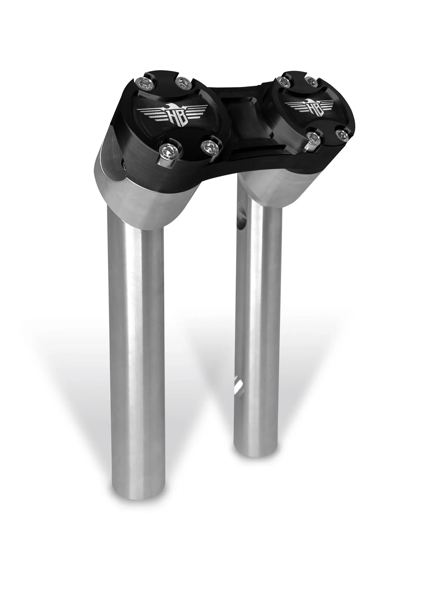 Beskrivelse HEINZ BIKES RISER PULLBACK 8" SILVER/BLACK 1" Our huge HeinzBikes Clubstyle Risers collection is made of high quality Billet Aluminum and comes in high gloss black or silver anodized finishes, paired with the aluminium clamp in high gloss black, gold, red or silver anodized. The top clamp is a one-piece construction for extreme stability and durability. The risers are pre-drilled for internal wiring for a super clean assembly. The HB-Eagle logo is machined into the billet aluminum to withstand severe weather conditions and looking fresh for years to come. The risers are pre-drilled for internal wiring for a super clean assembly. High quality Billet Aluminium CNC machine milled Risers with high gloss black or silver anodized finish Clamp with high gloss black, gold, red or silver anodized finish Extreme stability and durability Large internal wiring holes Premium quality - German Made |