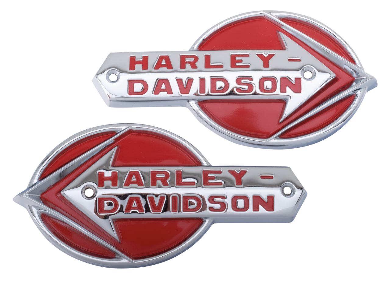 Beskrivelse VINTAGE GAS TANK EMBLEMS Tank emblems as used on almost any 1937-1971 model. Mandatory for everybody who takes restoration serious. These tank name plates are sold in sets for left and right. Use with a self-adhesive adapter bracket kit for custom fitment on tanks that do not have OEM mount brackets. Set of emblems (OEM 61775-59T) |