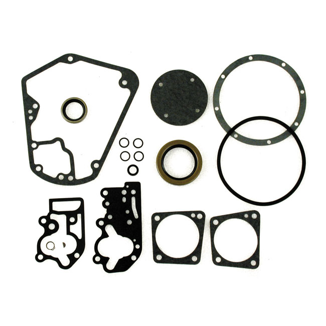 Beskrivelse S&S, lower end gasket & seal kit. 4" V-series engines Description Designed for use with S&S engines. Alternator style (70-99) engines will include gaskets for S&S flanged and flangeless cam covers, so not all gaskets will be used. Oil pump gaskets provided will fit all S&S engines, but may not fit engines that were special ordered to accept a different type oil pump configuration. Fitment 92-99 Big Twin V-series engines (Excl. SSW+ 4-1/8" bore engines) |