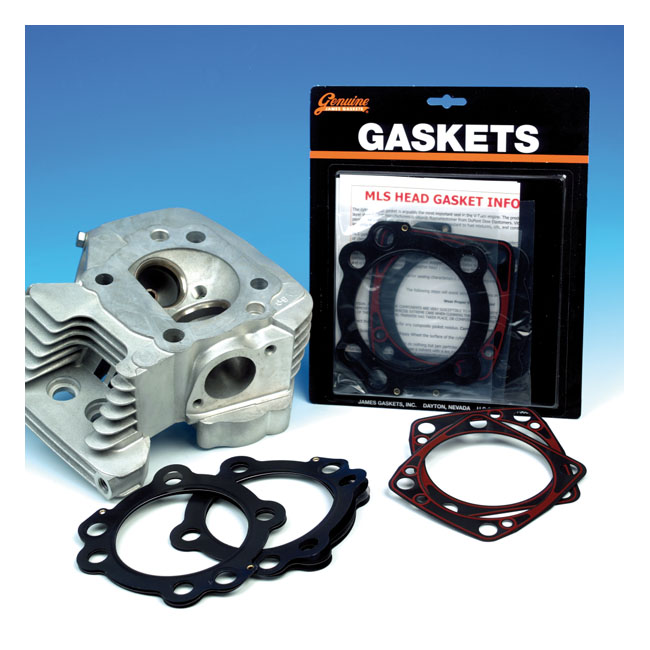 Beskrivelse James, Evo head & base gasket kit. MLS/RCM Description Standard 3.5" bore. This gasket kit comes with MLS (Multi Layer Steel) head gaskets and RCM (Rubber Coated Metal) base gaskets. - MLS (Multi Layer Steel) is used in high performance head gasket applications. They consist of multiple layers of steel uniquely designed and riveted together, outside the gasket surface for ease of installation, and provedes a high performance seal. MLS head gaskets eliminate the use of dowel pin o-rings - RCM (Rubber Coated Metal) consists of a .020" thick stainless spring steel base covered with a .001" thick heat resistant Viton rubber on both sides. A very strong gasket which requires no re-torquing. Fitment 84-99 Evo Big Twin (NU) |