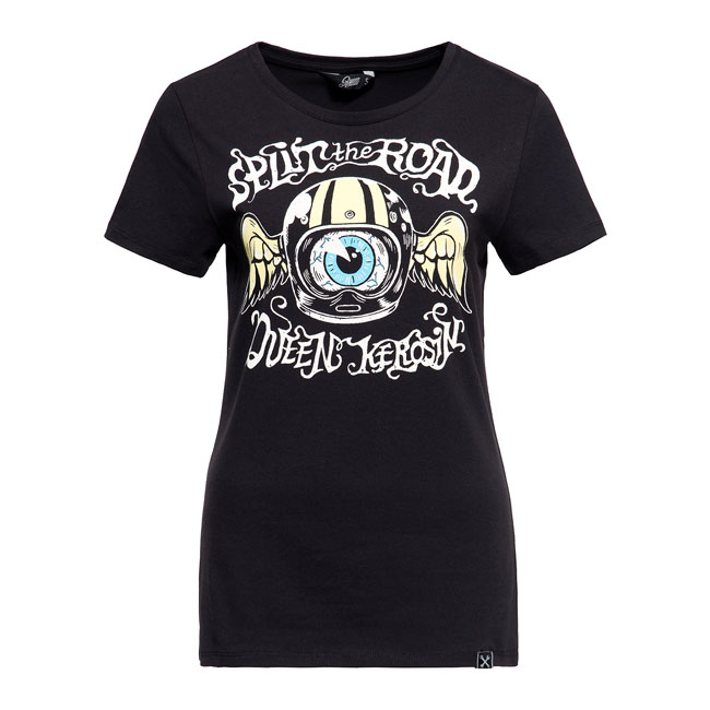 Beskrivelse Retroprintet på t-skjorten fra Queen Kerosin fanger umiddelbart oppmerksomheten. Den feminine slanke passformen for kvinnelige kurver. Hudvennlige stoff laget av bomull med en liten strekk. En klassisk rund hals og korte ermer fullfører designet. T-skjorten kan kombineres på mange måter, bruk den med jeans , med skjørt eller under en jakke. |
