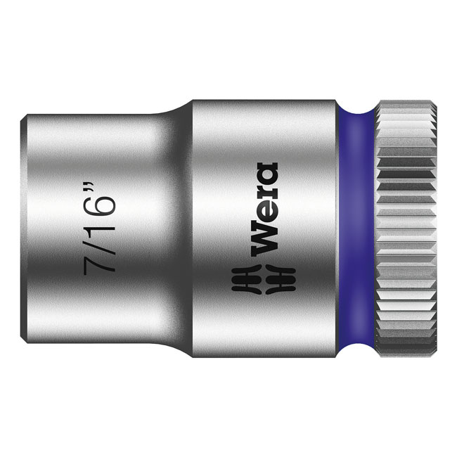 Beskrivelse 8790 HMB. 3/8" drive for hex bolts and nuts. Chrome vanadium with a brushed chrome plated finish and color coded for finding the right size quickly. Knurled at the base for easier manual turning. With ball intercept ring. Overall socket length 29 to 32mm depending on size. Note: Not compatible with impact wrenches. Size: 7/16" Fits: > Hex bolts and nuts |