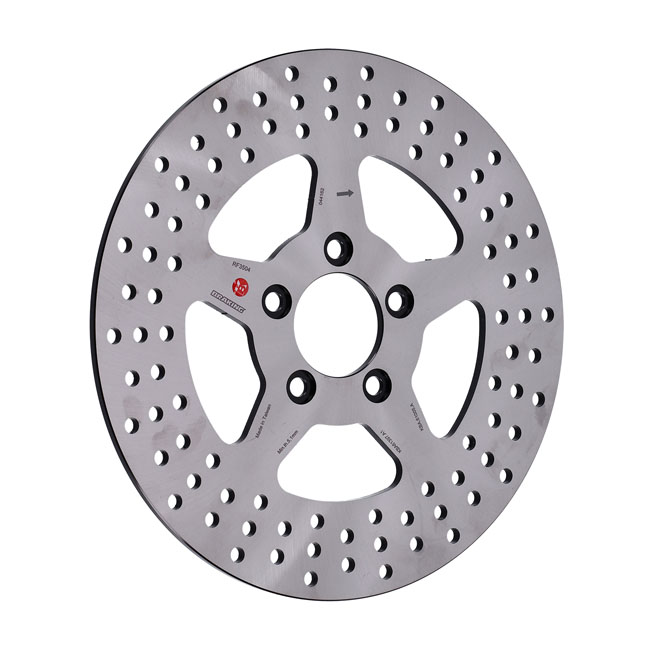 Beskrivelse 5 spoke solid brake rotor with approval. Dimensions 300mm OD; 56mm ID; 3/8" counterbored mounting holes Note: Check your local MCS dealer or the MCS sales department for exact type of approval and validity on bike model and years on the test report. Fits: > 08-21 Touring |