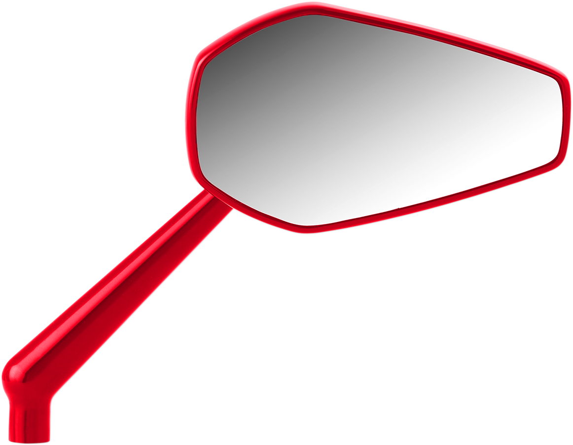 Beskrivelse Brand ARLEN NESS Vendor part number 13-155 Color/Finish Red, Anodized Material Aluminum Mirror Curvature Convex Mirror Head Height 69,85 mm (2-3/4") Mirror Head Shape Hexagon Mirror Head Width 11,43 cm (4-1/2") Mirror Style Mini, Stocker Mounting Position Right Mounting Style Screw-In Product Name Mirror Type Side View Units Each |