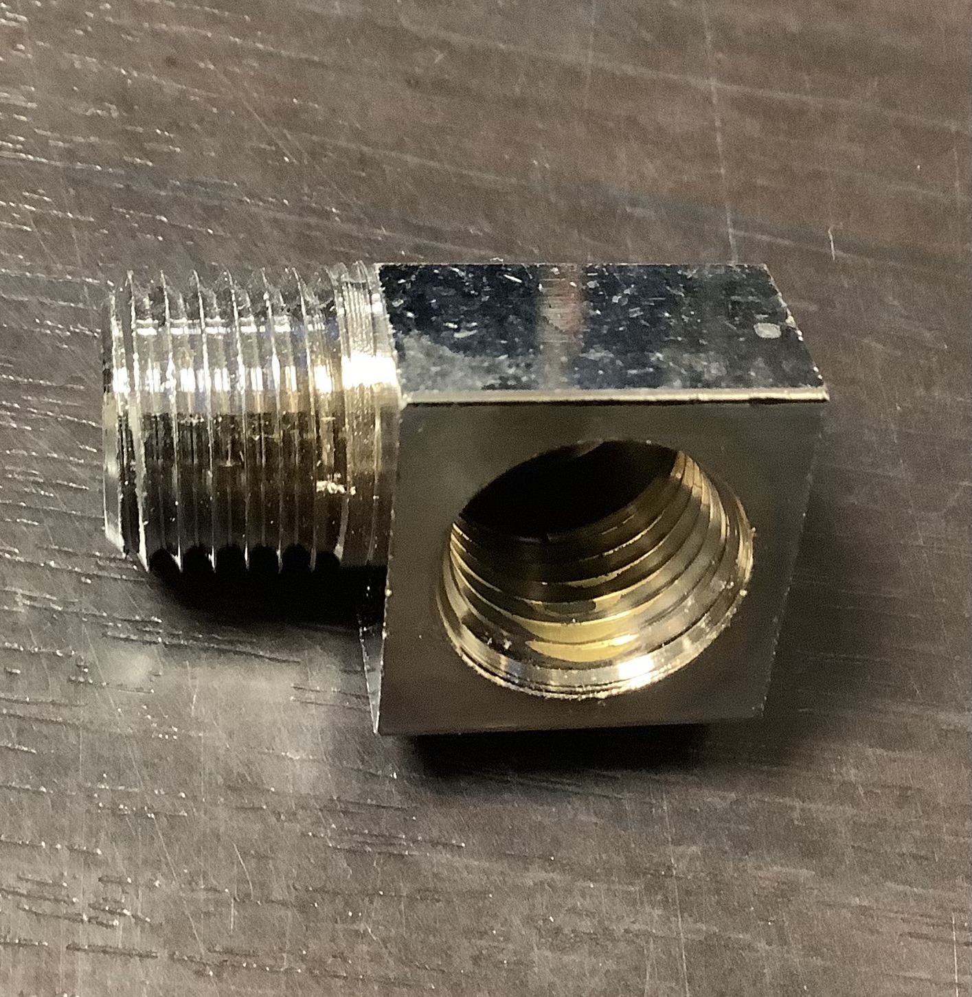 Oil fitting chrome 1/4NPTx90