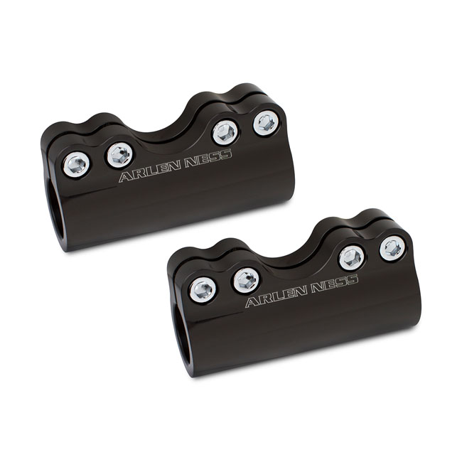 Beskrivelse NESS MOLULAR BILLET HANDLEBAR CLAMP BLACK 1-1/4" Black anodized aluminum. For 1.25" diameter bars. Allows you to cut handlebars to make the pullback angle adjustable, similar to the Ness modular handlebars. Clamps are 4" long and feature an internal stop at 2". This allows to properly clamp 2" of each side of the bar for a secure hold. Incl. cutting and torqueing instructions for the included hardware. Fits: > Univ. |