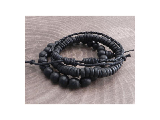Beskrivelse AMIGAZ BEAD & CORD BRACELET This 3 pack set of black bracelets of Amigaz features 3 styles. The set has 1 pc. 8mm round coco wood beads, 1 pc. 8 x 2&3 mm coco wood disc beads and is nicely complimented by 1 pc. Braided 3mm cord bracelets. This is a generous grouping of bracelets filled with 2 stretch cord bracelets and 1 black cord bracelets that have a disc and loop clasp. Fits: > 7 - 8" wrist |