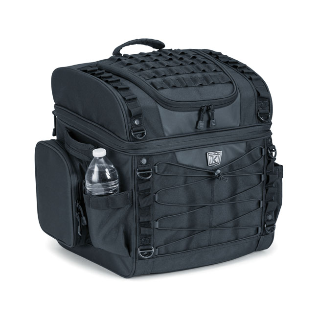 Beskrivelse KURYAKYN MOMENTUM VAGABOND BAG, BLACK You and your bag, that's what the Vagabond Bag is about. The tough strong look screams adventure and the size and versatility will offer all you can imagine for a weekend, or much longer, from a luggage carrying bag. An internal structure helps maintain shape, even when empty. Includes one top and one large bottom center compartments with internal zippered compartments. Two quick access side compartments for drink bottles an additional two zippered side compartments for speedy access. An additional padded top compartment leaves room for up to 13" laptops. Made from UV-rated weather resistant 1200 denier textile. Includes a removable shoulder strap & carrying handle and multiple D-rings for secure attachment. Additionally a sissy bar strap system is included. Comes with a tethered rain cover for days you'd rather not see. Approx. dimensions: 18" (45.7cm) wide x 12" (30.5cm) deep x 15.5" (39.4cm)tall. Capacity 2820 Cui (46 liters). Fits: > Universal. |